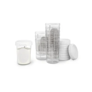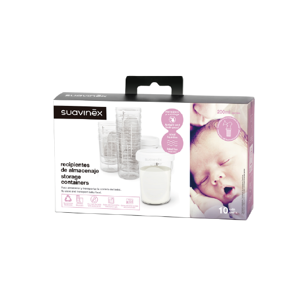 Recipientes reutilizables para almacenar leche materna, papillas y otros alimentos. Incluye 10 tarritos de 200 ml cada uno, con tapa hermética para una conservación segura. Son aptos para microondas y lavavajillas.