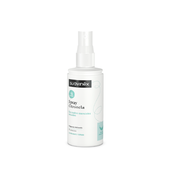 Spray antimosquitos de citronela 100 ml, elaborado con aceites esenciales naturales. Clínicamente testado bajo control dermatológico y pediátrico, apto para pieles sensibles y bebés desde los 6 meses. Evitar aplicación en el rostro.
