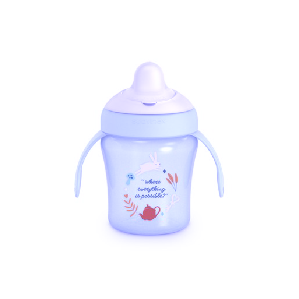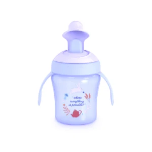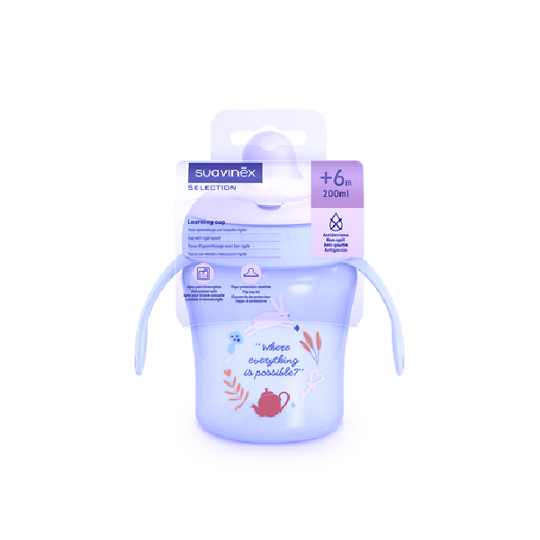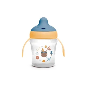 Taza de aprendizaje con sistema antiderrame, ideal a partir de los 6 meses. Cuenta con tapa protectora abatible y asas extraíbles que facilitan el agarre y fomentan la autonomía. Su diseño flexible y suave se adapta perfectamente al proceso de dentición, ofreciendo comodidad en cada toma.