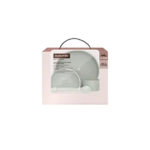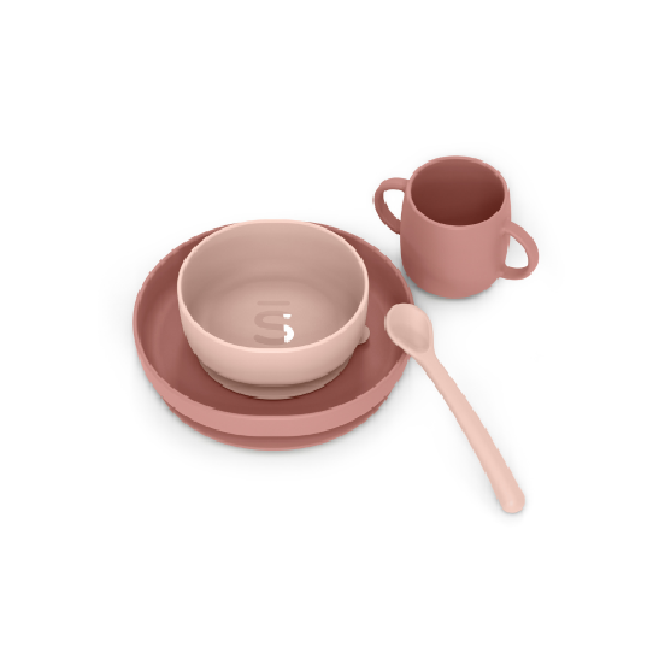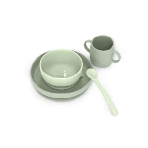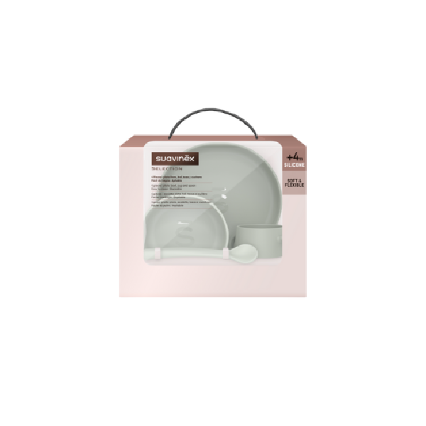Vajilla de silicona suave y flexible, ideal para iniciar la alimentación complementaria desde los 4 meses. Incluye 4 piezas esenciales: